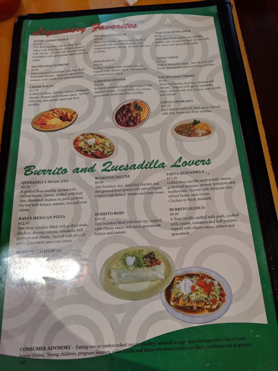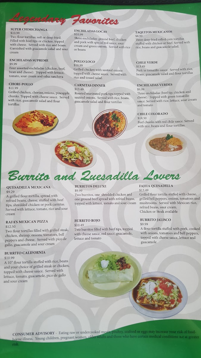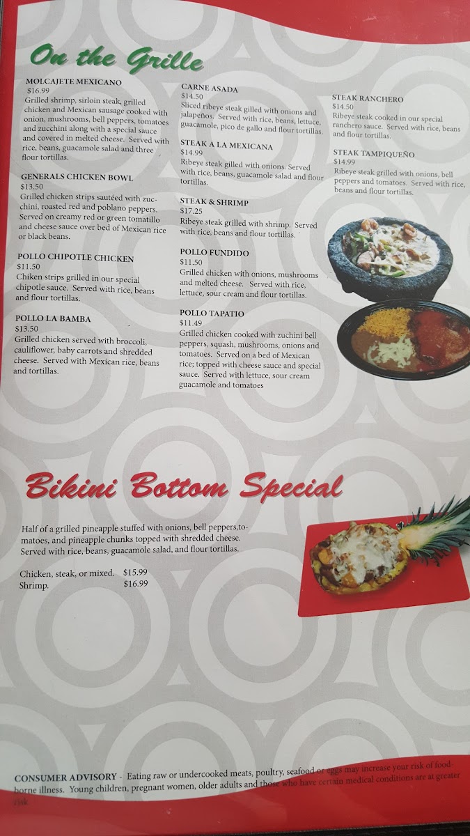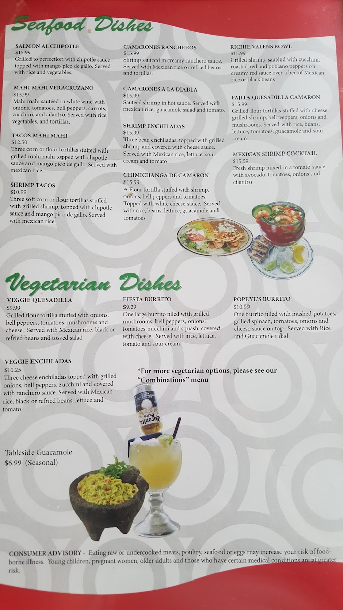 The menu features a variety of traditional Mexican dishes alongside some house favorites, such as the Molcajete Mexicano, Classic Fajitas, and Combination Chicken Beef Cheese Enchiladas Verdes. Light starters like chips & salsa or fresh guacamole create the perfect prelude, while hearty options such as Steak Fajitas with rice and beans or Chimichanga De Camaron offer a fulfilling main course.